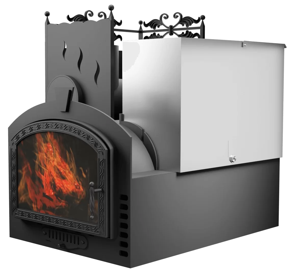 В комплектации данной модели предусмотрена система воздушного отопления (СВО), которая способна обогреть комнату отдыха до 40 м3. В конструкции печи предусмотрен дополнительный контур. Система подключается к электричеству, вентилятор подает холодный воздух, который прогреваясь от печи выходит в комнату отдыха. В комплект входит6 вентилятор, гофрированная труба 1 метр, хомуты и обратный клапан.