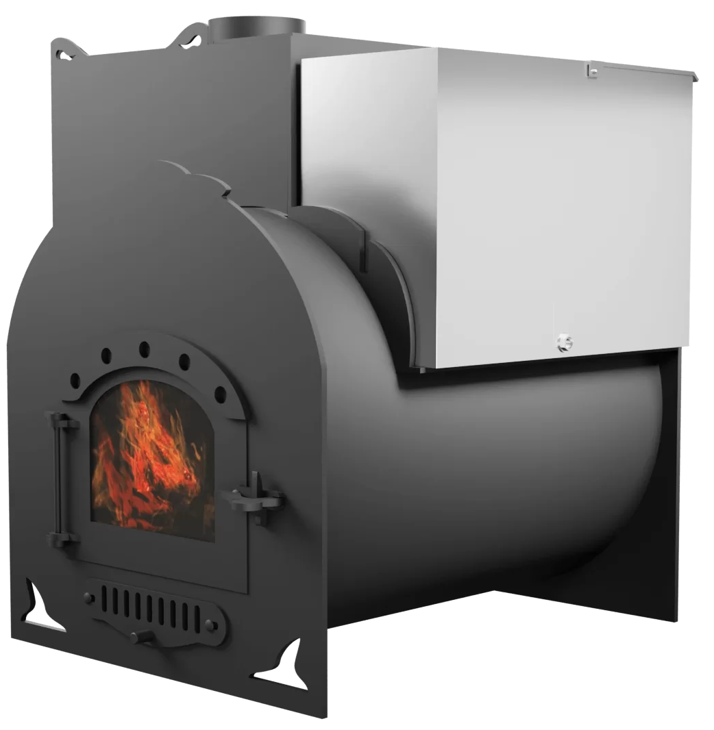 Печь Горыныч 3, каменка закрытая с парогенератором с левой стороны, большая дверь со стеклом